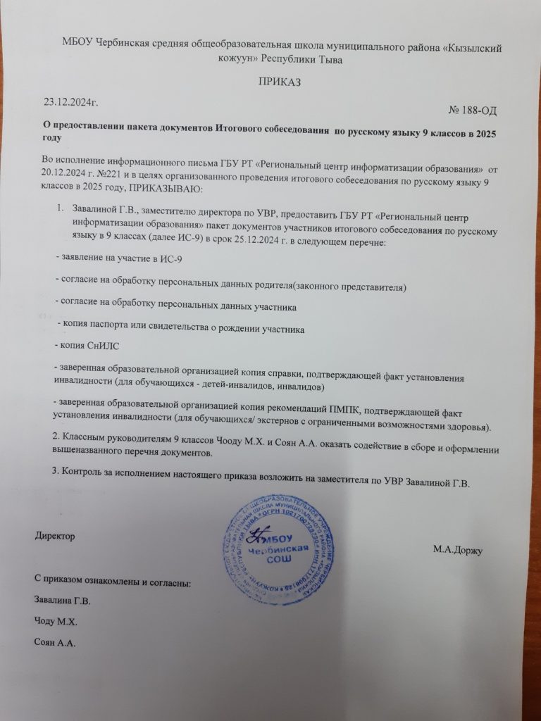 О предоставлении пакета документов ИС по РЯ 9 класса в 2025 г.
