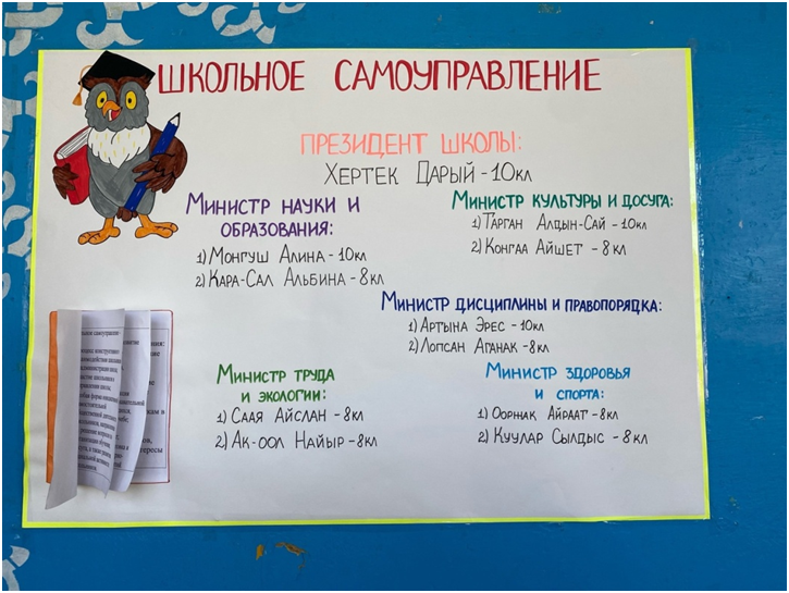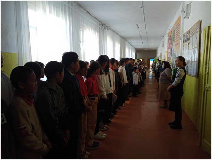 План школьных мероприятий озвучен заместителем директора по воспитательной работе Ооржак Б.Б. и заместителем директора по НМР Ооржак Ш.Д. Дежурный класс по школе 9 А класс (классный руководитель Соян А.А.)