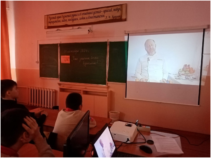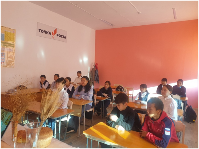 Учебный день начался с контроля по соблюдению мер безопасности по профилактике инфекционных заболеваний. Внеурочное занятие из цикла «Россия – мои горизонты» проведено на тему «Россия аграрная: пищевая промышленность и общественное питание»