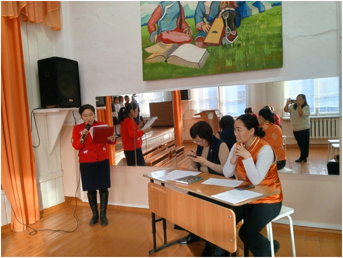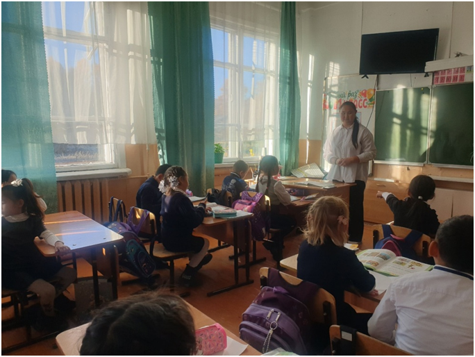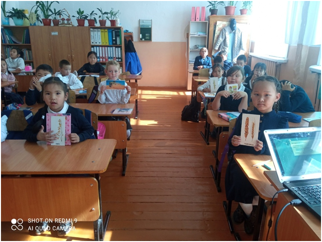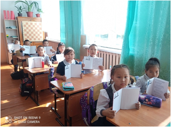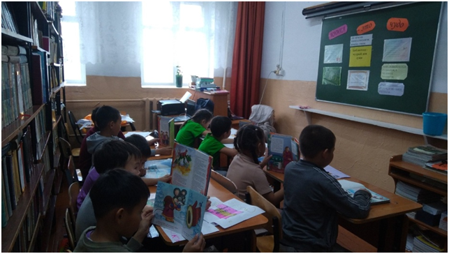 В день школьных библиотек Хертек Ч.Ч. провела беседу о пользе чтения и громкое чтение текстов художественных произведений учащимся начальной школы.