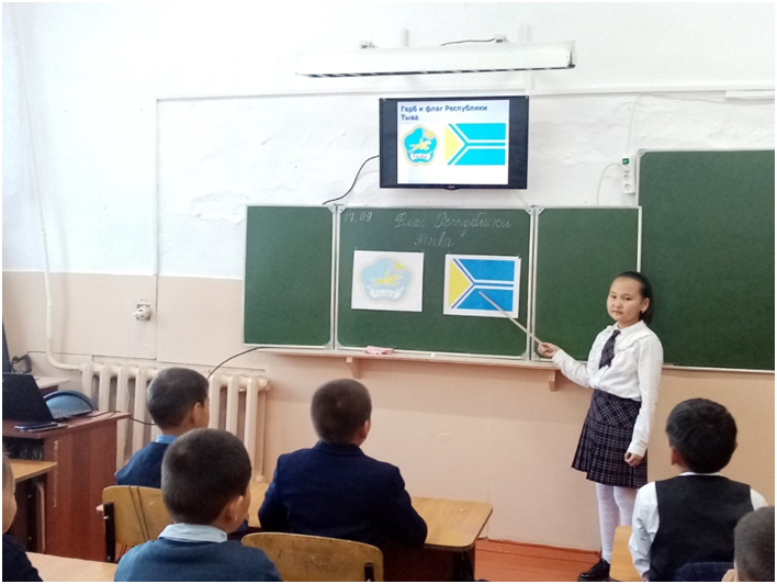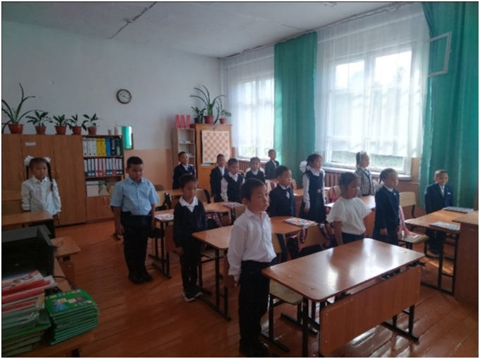 Учебный день 16 сентября начался с контроля по соблюдению мер безопасности по профилактике ОРВИ, гриппа и других инфекционных заболеваний . В 8.00 часов была организована церемония поднятия государственных флагов Российской Федерации и Республики Тыва.