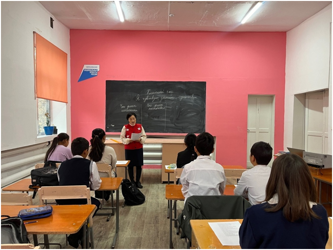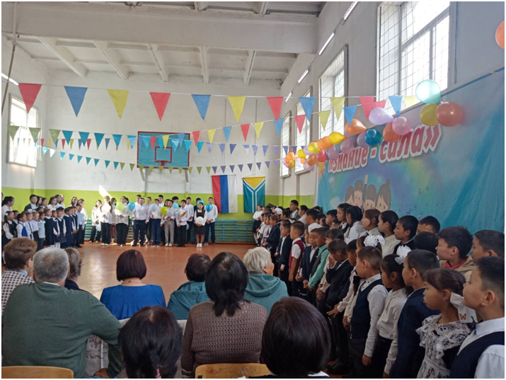 Для учащихся была организована торжественная линейка, посвященная Дню знаний, классными руководителями проведены классные часы в 1-11 классах, посвященные Дню памяти тувинских добровольцев, Году здоровья в Республике Тыва, Году семьи в Российской Федерации. Затем были проведены внеурочные занятии из цикла «Разговоры о важном» на тему «Образ будущего. Ко Дню знаний» с целью формирования у обучающихся осознанного и глубокого понимания значимости образа будущего как ориентира для личного и общественного развития; воспитания чувства ответственности за будущее своей страны, осознание роли каждого человека в построении сильной и независимой России; развития понимания ценности образования как основного инструмента для достижения жизненных целей и преодоления вызовов, стоящих перед современным обществом.