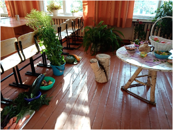 Оригинально школьники оформили свои учебные кабинеты в импровизированные сельские дворы. Такое оформление наполняет помещение теплом и светом, солнечной энергией и красками золотой осени.