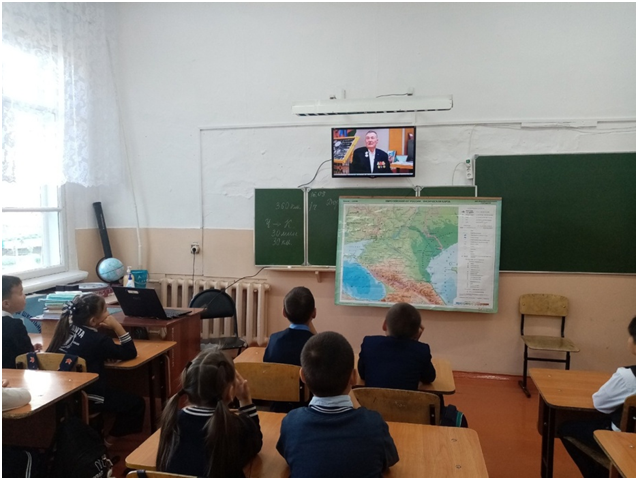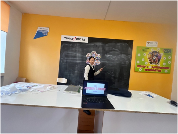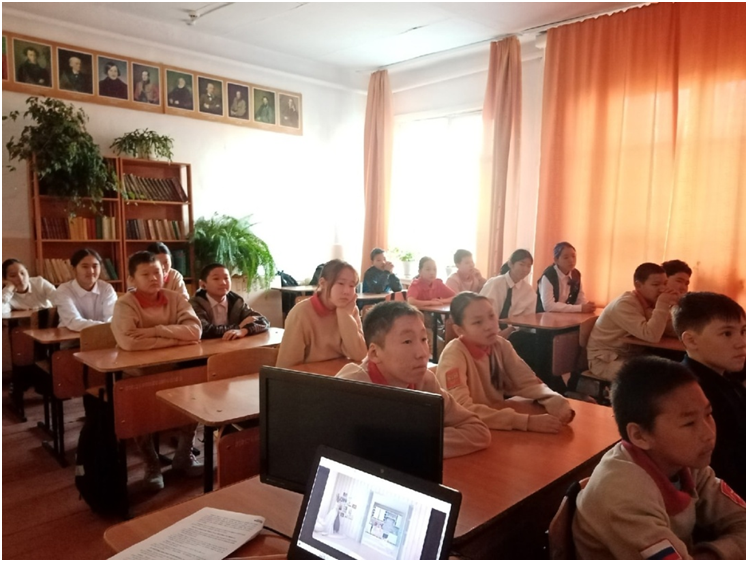 Учебный день начался с контроля по соблюдению мер безопасности по профилактике инфекционных заболеваний. Внеурочное занятие из цикла «Россия – мои горизонты» проведено на тему «Россия здоровая: биотехнология, экология».