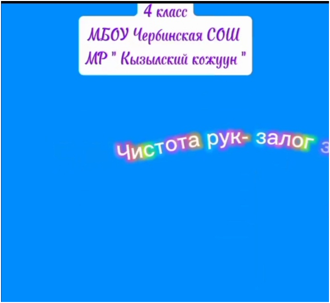 В связи с «Всемирным днем чистых рук» учащиеся начальных 2 – 4 классов под руководством классных руководителей Хертек У.С., Ооржак Ш.Д., Монгуш А.К. выпустили видеоролики, посвященные данной дате.