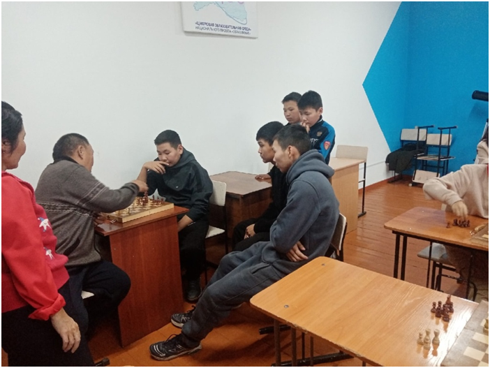 В школе продолжаются мероприятия, посвященные Международному Дню отцов. В рамках данных мероприятий прошел мастер-класс по игре в шахматы «Путешествие по шахматной доске». Его провел уважаемый отец Андрей Иргит-оолович Ооржак, неоднократный победитель и призер сумонных, кожуунных, республиканских шахматных турниров. Он показал мастер-класс по игре «Шыдыраа». Андрей Иргит-оолович рассказал, что игра Шыдыраа – одна из немногих игр, которая сочетает в себе элементы искусства, науки и спорта, это одна из самых древних интеллектуальных игр. В ней сочетаются спорт, научное мышление и элементы искусства. Юнармейцы школы узнали историю появления игры и познакомились с несколькими шахматными комбинациями.