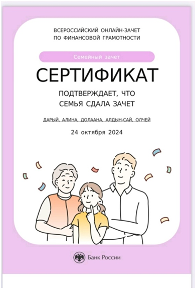 Сегодня под руководством заместителя директора по ВР Ооржак Б.Б. организовано прохождение учащимися VII Всероссийского онлайн — зачета по финансовой грамотности.
