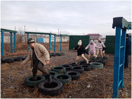 сдетьми преодолевали препятствия и выполняли веселые и спортивные задания, а