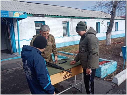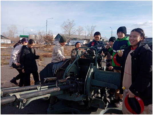 По патриотическому направлению согласно плану 28 октября юнармейцы 7 класса под руководством Сандый Ш.В. (классного руководителя) посетили Центр ВПВ «Патриот». Юнармейцев встретил начальник регионального ВВПОД «Юнармия» Айдын Юрьевич Шивидек. Он познакомил ребят с расположением штаба, рассказал о том, какие сборы могут проходить на базе Центра, провел ознакомительную экскурсию по полигону, организовал разборку и сборку автомата. Юнармейцы с большим интересом отнеслись к мероприятию. Далее они посетили Партизанскую деревню на территории Центра и познакомились с выставленной военной техникой.