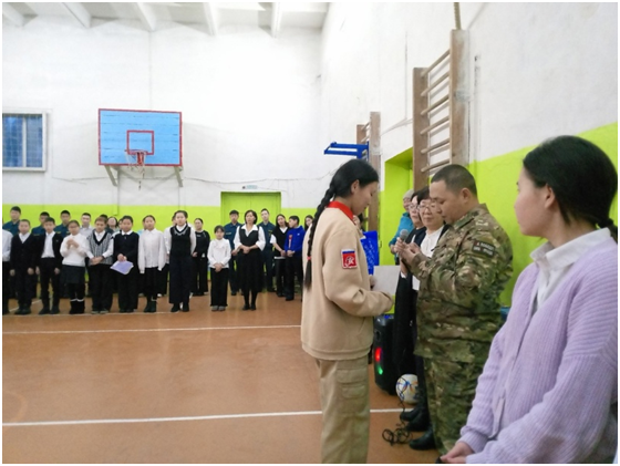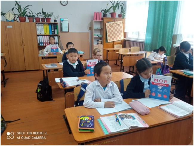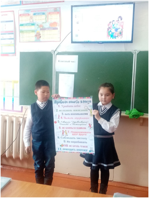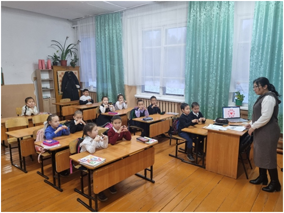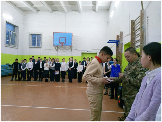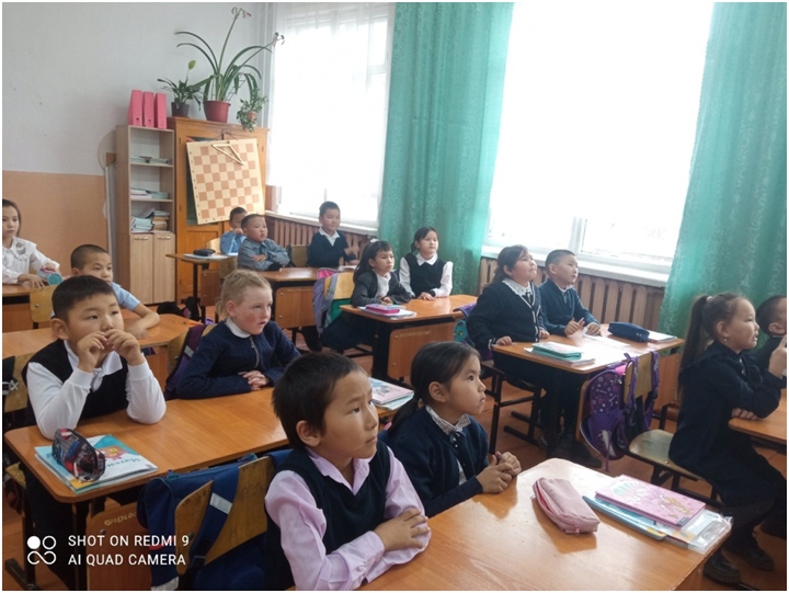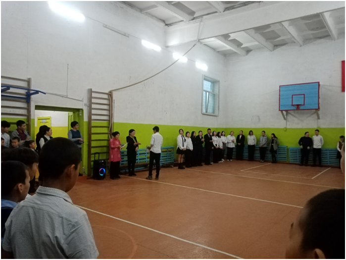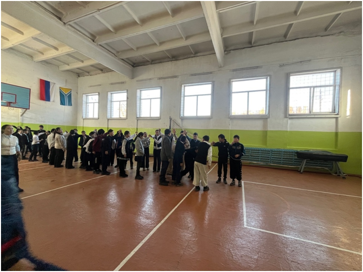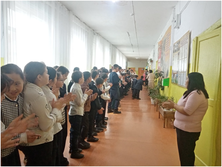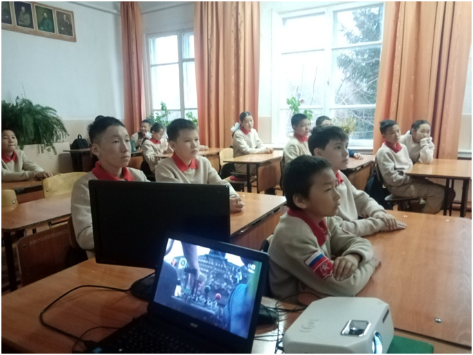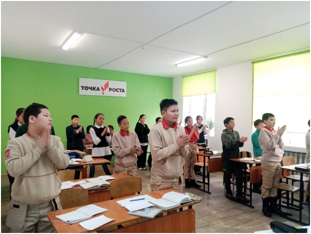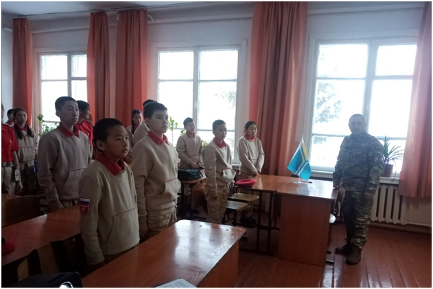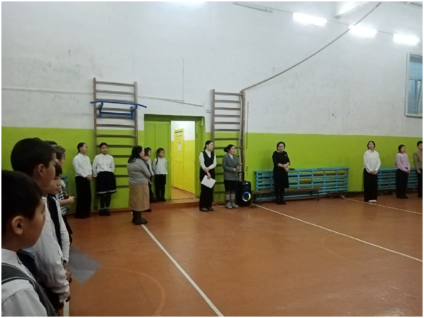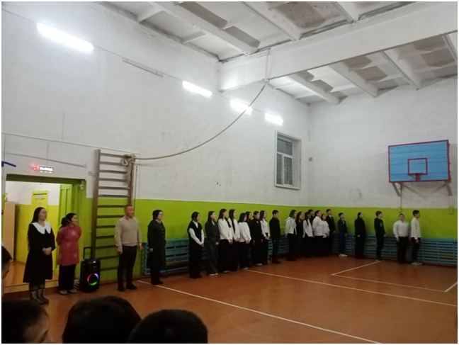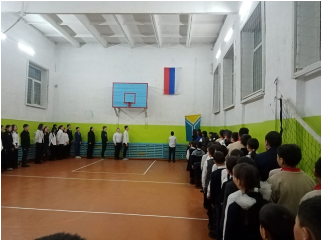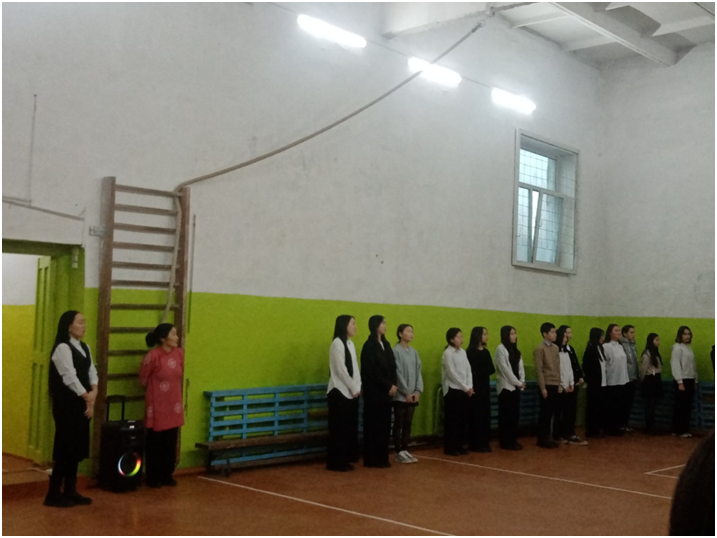 Учебный день новой недели начался с контроля по соблюдению мер безопасности по профилактике ОРВИ, гриппа и других инфекционных заболеваний. В 8.00 часов была организована церемония поднятия государственных флагов Российской Федерации и Республики Тыва. Право поднять государственные флаги было предоставлено участникам ежемесячного кожуунного турнира по национальной борьбе «Хуреш» среди школьников.