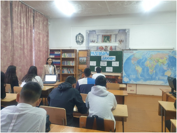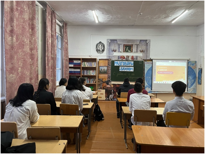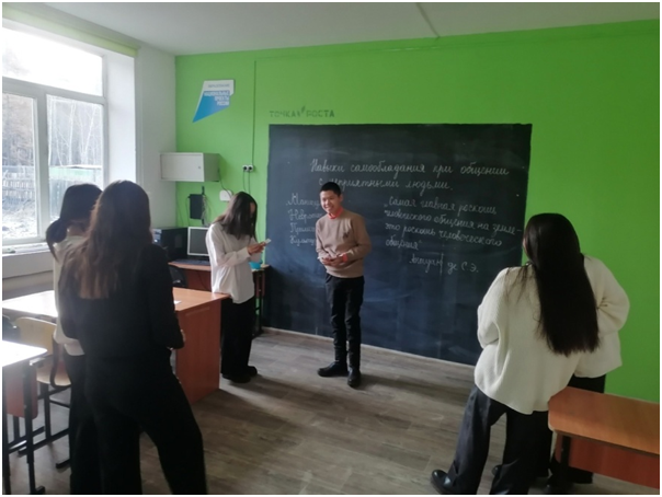 С контроля по соблюдению мер безопасности по профилактике ОРВИ, гриппа начался учебный день в школе. Во всех классах проведены классные часы в рамках месячника профилактики. Например, классный час на тему : «Навыки самообладания при общении с неприятными людьми» прошел в 11 классе с целью отработки в ситуациях общения и приобретение навыков психологической защиты от критики.