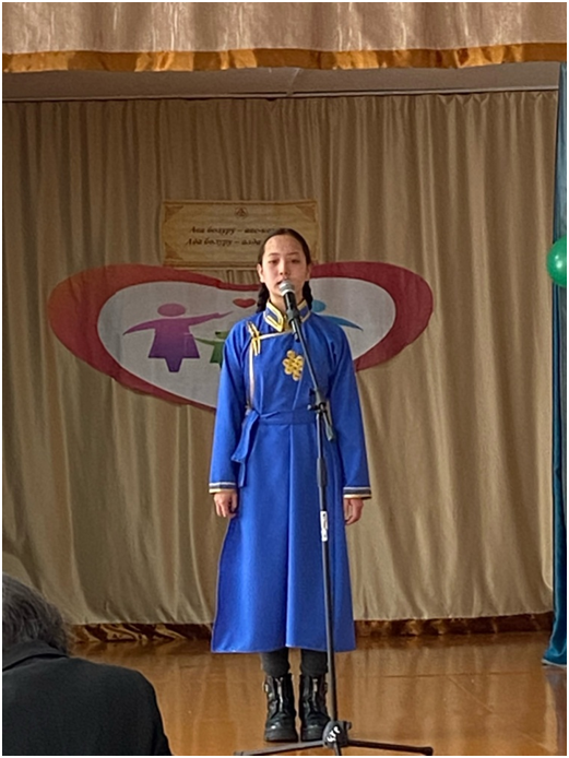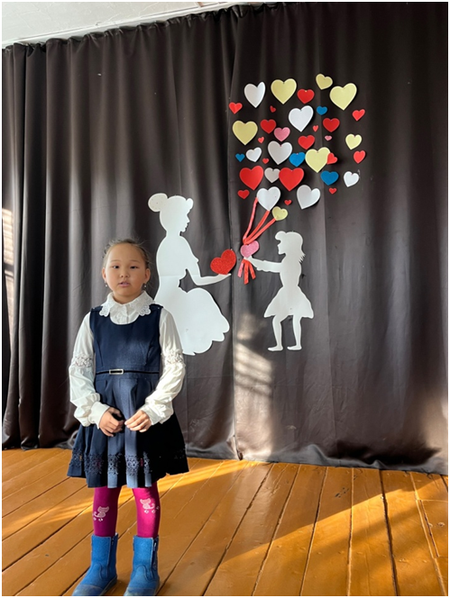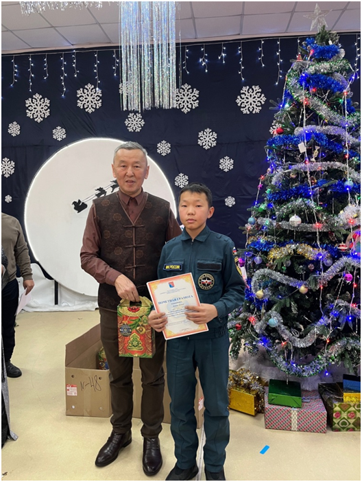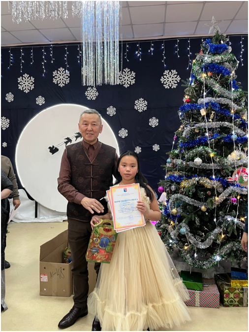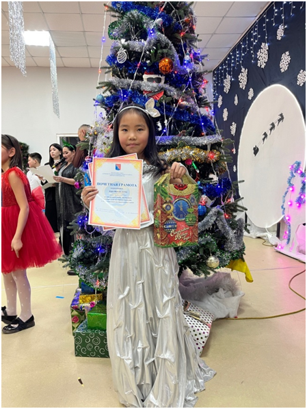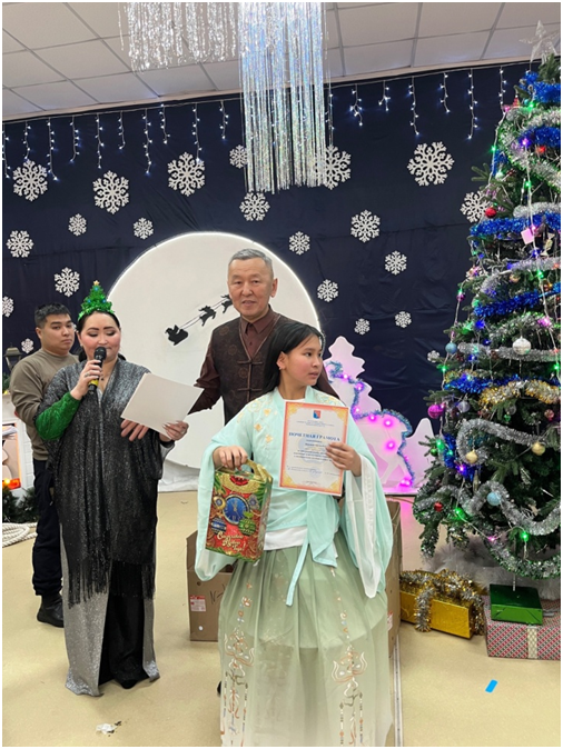Также сегодня Верховный Хурал провел Новогоднюю ёлку для детей участников специальной военной операции. От нашей школы в новогоднем утреннике участвовала ученица 6 класса Монгуш Аюржана.