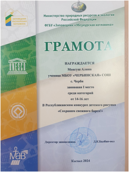 Поздравляем ученицу 10 класса Монгуш Алину с победой