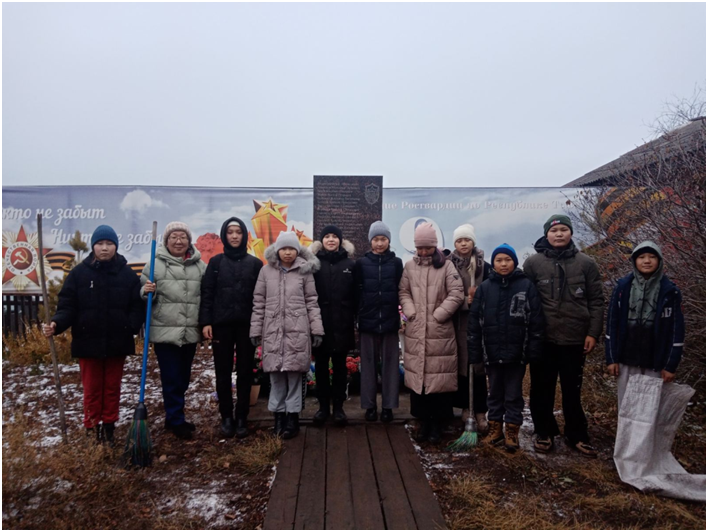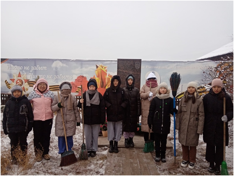 Сегодня юнармейцы 7 класса под руководством классного руководителя Сандый Ш.В. очистили территорию Обелиска памяти ветеранов Великой Отечественной войны. Мероприятие направлено на формирование почтительного отношения учащихся к истории нашей страны.