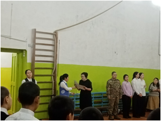 Слова благодарности прозвучали от администрации школы в адрес индивидуальных предпринимателей — Биче-оола Н.Т., Хертек О.С., Сарыглар А.Б., Сат Р.К. за поддержку педагогического сообщества сумона.