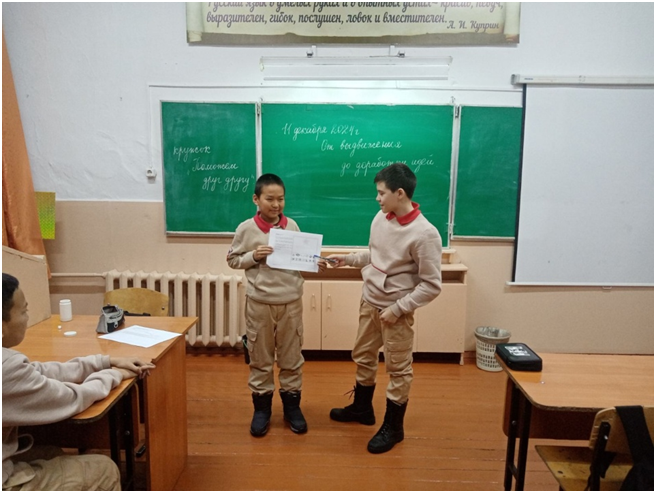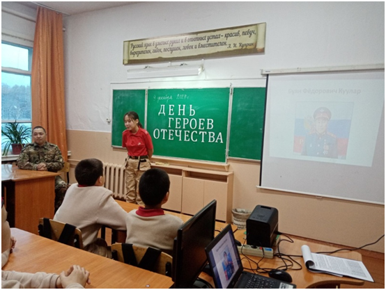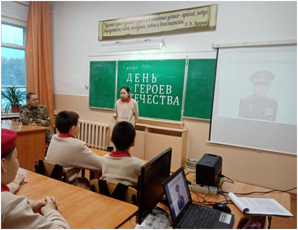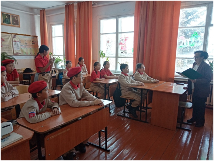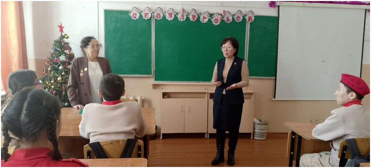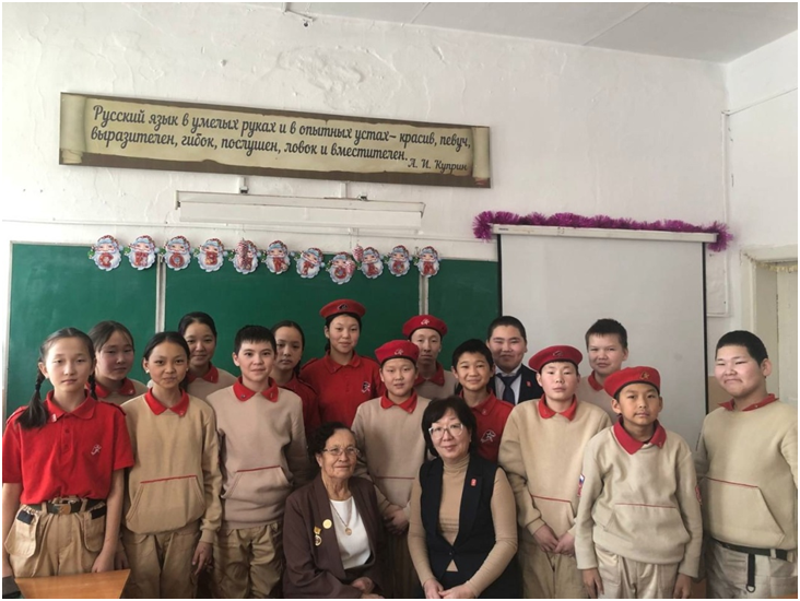 Сегодня юнармейцы отряда «Хранители истории» пригласили на Встречу заведующую Музеем — Избой русского быта «Заслуженного работника культуры Республики Тыва» Березкину А.И. Журналисты отряда Монгуш Оргаадай и Кыстам Полина, командиры отделений Салчак Владимир и Маргыс Долума задавали Александре Ивановне вопросы об истории возникновения села Черби, об истории всех учреждений, которые находятся на территории сумона и др.. А фотографы Ооржак Юна и Кок-оол Елизавета, видеограф Ондар Дарый снимали Встречу. Александра Ивановна рассказала об истории родного села школьников в интересной форме с представлением фотографий. Данное мероприятие является одним из заданий Хранителей истории.