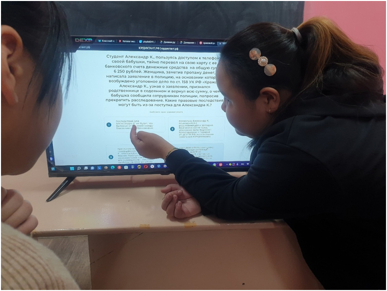 Согласно утвержденному плану зимних каникул проведены мероприятия по разным направлениям. По графику рейдовых мероприятий классными руководителями 7, 9 «а» и 5 классов Сандый Ш.В., Соян А.А. и Донгак С.Л. посещены две семьи.