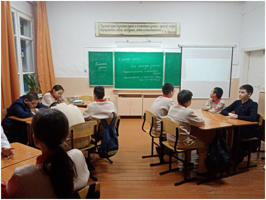 Сегодня согласно плану работы временных досуговых центров советником директора по воспитанию Хертек С.И. проведено мероприятие «День народного единства». Организовано занятие кружка «Движение первых».