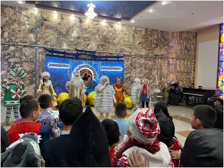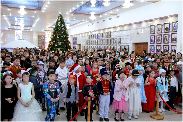 Сегодня в Национальном музыкально-драматическом театре им. В. Кок-оола собрались самые талантливые дети Тувы — юные спортсмены, танцоры, певцы, музыканты, победители различных фестивалей, конкурсов и олимпиад, а также дети участников специальной военной операции. На елку были приглашены более 1000 детей со всех уголков республики. В их числе и учащиеся нашей школы.