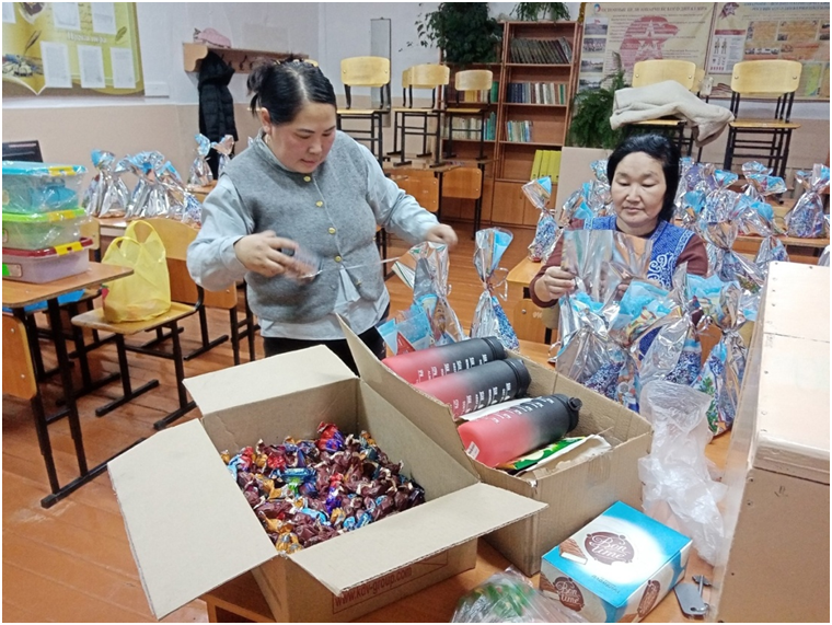По завершении представления детям были вручены сладкие подарки от Верховного Хурала.
