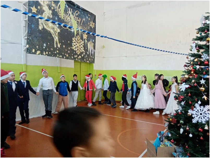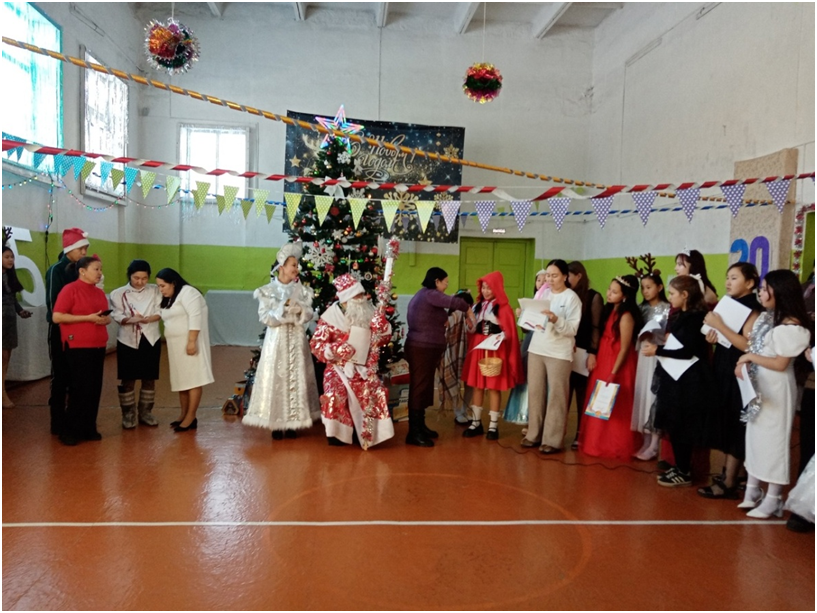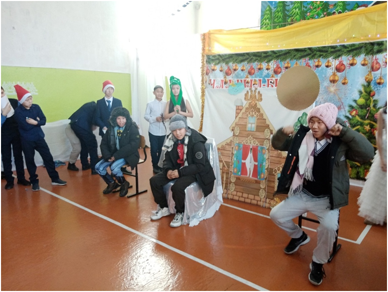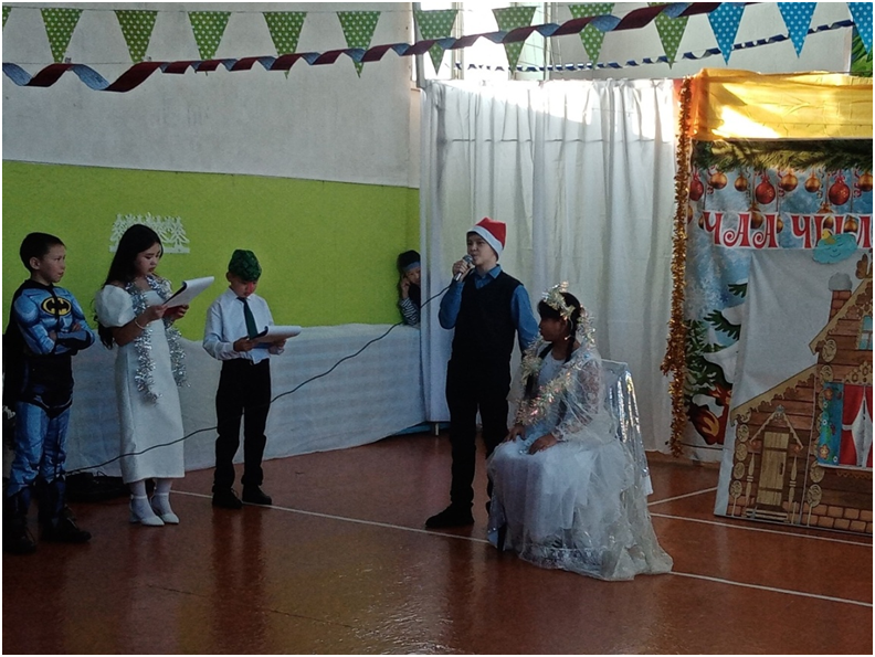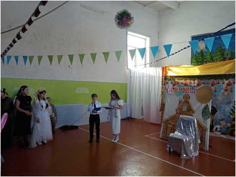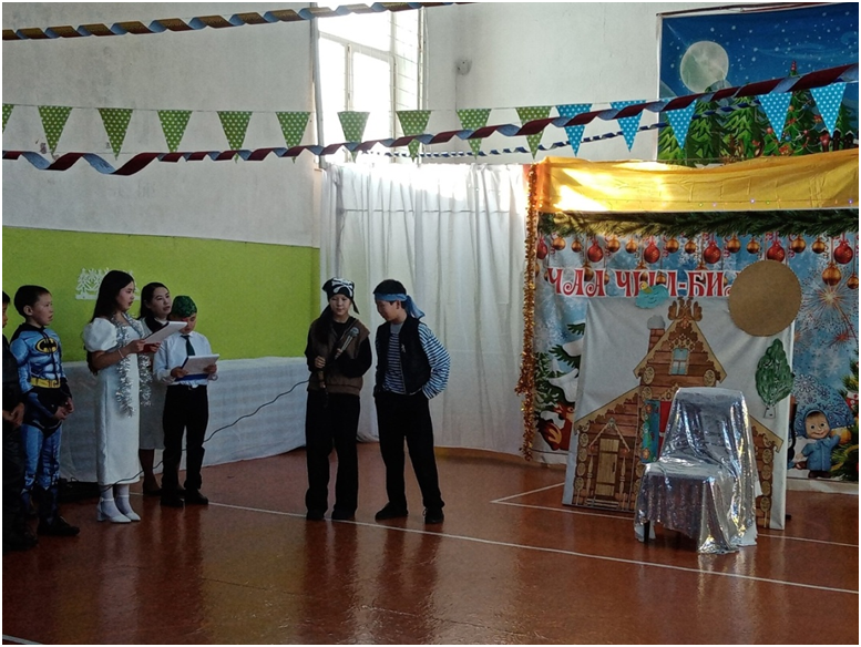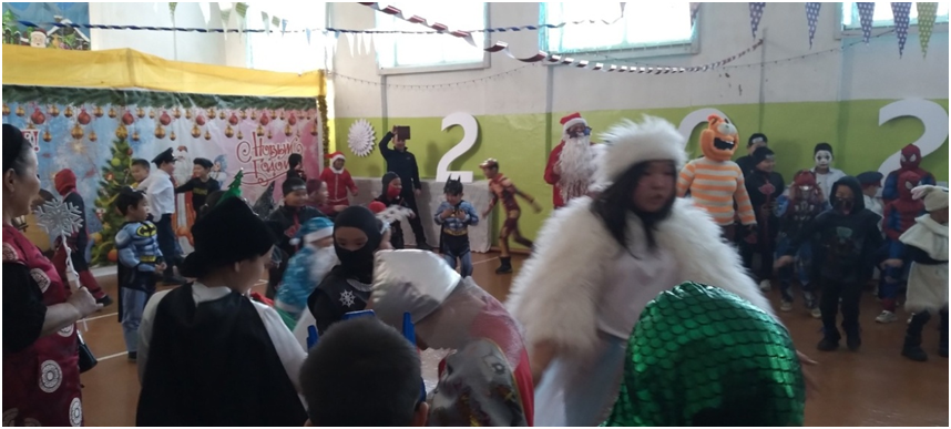 Сегодня в школе прошли долгожданные утренники для учащихся трех потоков. 1 поток для учащихся 1-4 классов, 2 поток для учащихся 5-7 классов, 3 поток для учащихся 8-11 классов. Ответственными за проведение данных мероприятий были в первом потоке 4 класс с классным руководителем Монгуш А.К., во втором потоке – 5 класс с классным руководителем Донгак С.Л., в третьем потоке -10 класс с классным руководителем Хертек С.И. Новогодние утренники проводились с целью создать праздничную атмосферу, доставить радость детям, раскрыть творческие способности учащихся через различные виды деятельности.