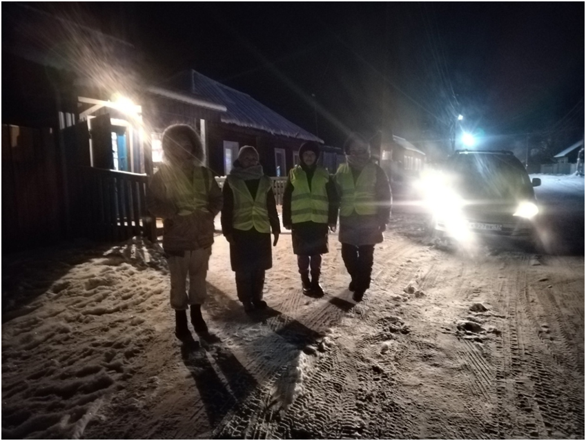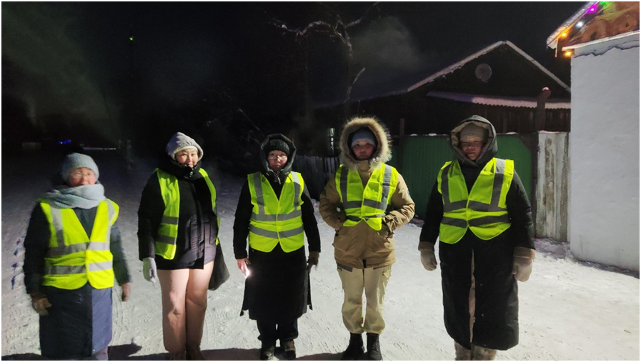 Вечером Родительский патруль 11 класса провел дежурство на территории сумона под руководством классного руководителя Монгуш Ч.Ч.