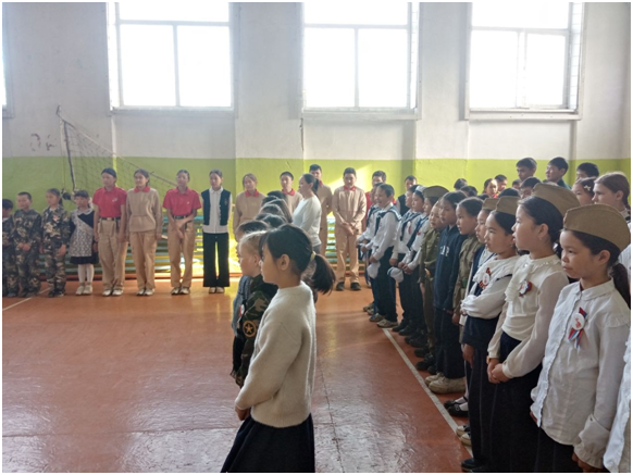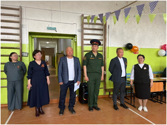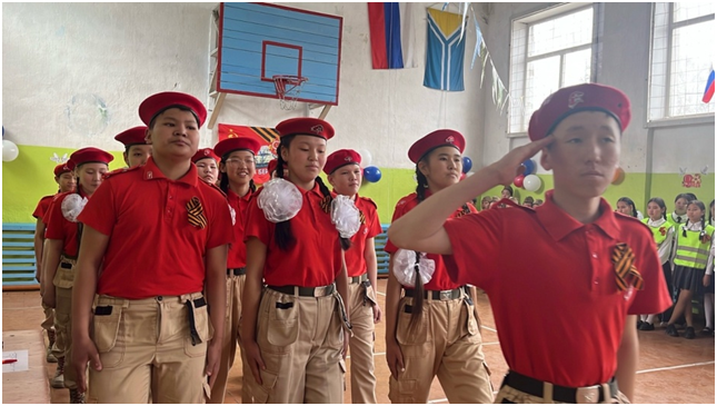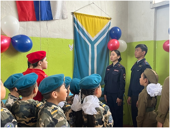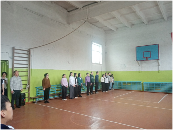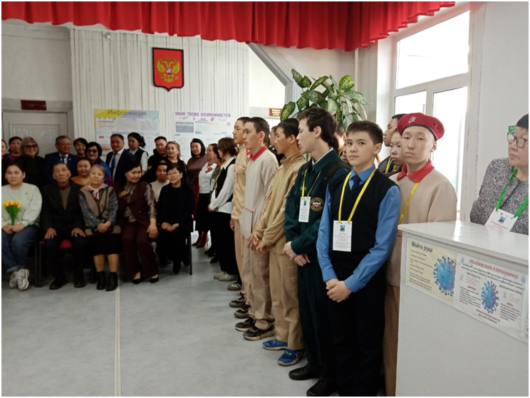 Торжественно проведена церемония поднятия государственных флагов Российской Федерации и Республики Тыва. Честь поднять государственные флаги была предоставлена отличникам учебы ученице 6 класса Монгуш Аюржане и ученице 4 класса Кара-Монгуш Даяне. Прозвучали гимны Российской Федерации и Республики Тыва.