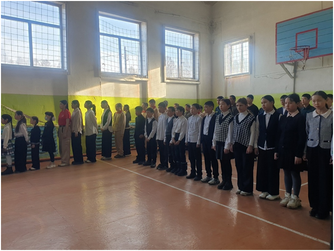 После второго урока для учащихся 1 — 11 классов руководителем ОБЖ Сенди Б.В. и педагогом-организатором по профилактике правонарушений Сатом А.П. организована общешкольная линейка по соблюдению мер безопасности и соблюдения Комендантского часа в праздничные дни.