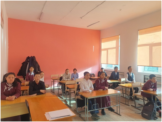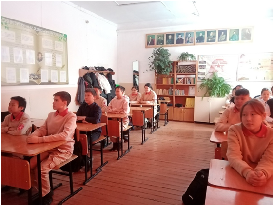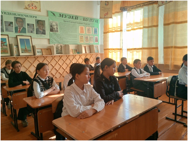 С контроля по соблюдению мер безопасности по профилактике ОРВИ, гриппа начался учебный день в школе. Первым уроком прошли классные часы в 1-11 классах. Учитель родного языка Донгак С.Л. провела беседу, посвященную к 100-летию доктора исторических наук, этнолога, этнографа, Народного писателя Тувы М.Б.Кенин-Лопсана.