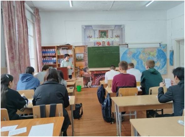 Сегодня нашу школу посетила кандидат филологических наук доцент кафедры русского языка и литературы Тувинского государственного университета Сат Кира Ангыр-ооловна. Она провела профориентационную беседу, рассказала выпускникам о факультетах, специальностях нашего учебного заведения, призвала школьников поступать учиться в университет. Отметила, что Тувинский государственный университет входит в число престижных ВУЗов России.