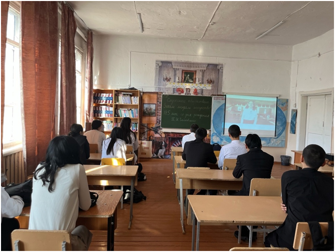 Затем классными руководителями во всех классах проведены внеурочные занятия из цикла «Разговоры о важном» на тему «Служение творчеством. Зачем людям искусство? 185 лет со дня рождения П. И. Чайковского» с целями обогащения представлений обучающихся о служении Отечеству, углубления понимания социального и духовного смысла творчества, значения искусства в жизни общества и человека; приобщения к ценностям российской культуры; формирования и развития чувства гордости за достижения родной страны, уважения к выдающимся деятелям русской культуры, интереса к их творчеству; расширения общекультурного кругозора, потребности в приобщении к искусству и творческой деятельности.