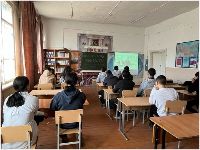 Учебный день начался с контроля по соблюдению мер безопасности по профилактике инфекционных заболеваний. Классными руководителями 1-11 классов проведены внеурочные занятия из цикла «Россия – мои горизонты».