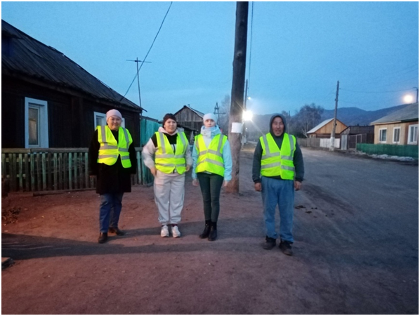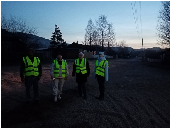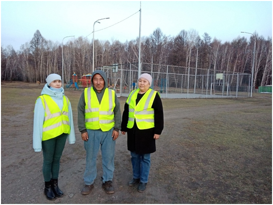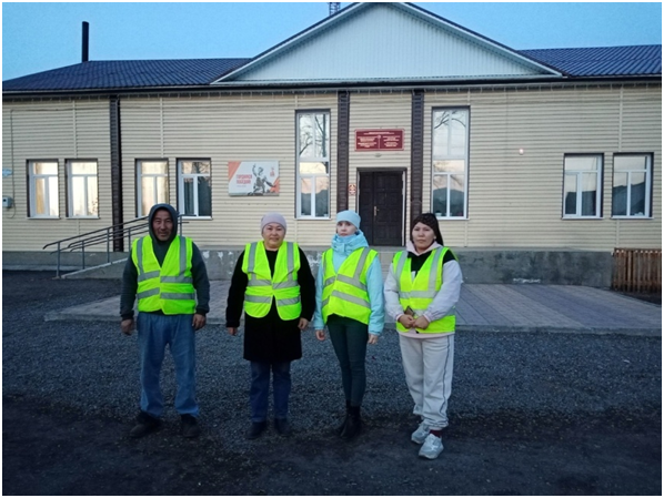 Вечером Родительский патруль 9 «б» класса с руководителем ОБЖ Сенди Б.В. провели дежурство на территории сумона.