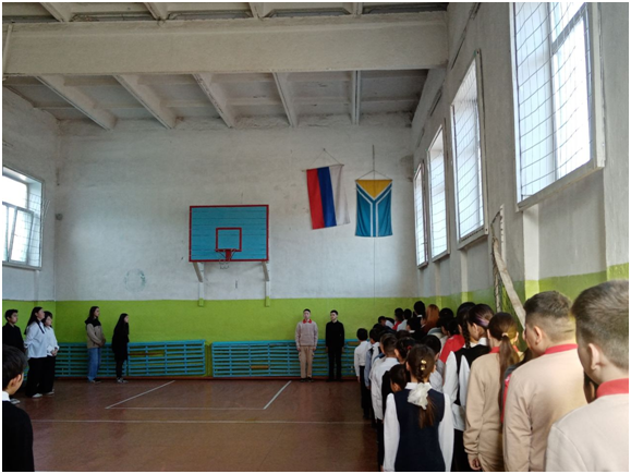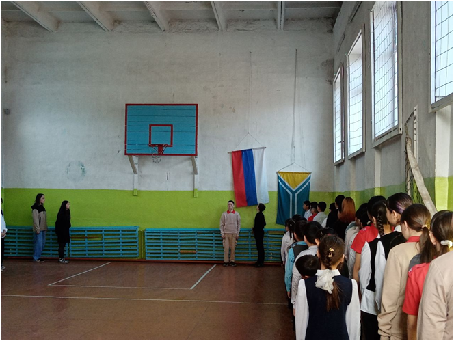 После церемонии поднятия государственных флагов проведена общешкольная линейка. На линейке подведены итоги прошедшей учебной недели, озвучены планы на текущую. Дежурство оставлено за 8 классом (классный руководитель Завалина Г.В.).