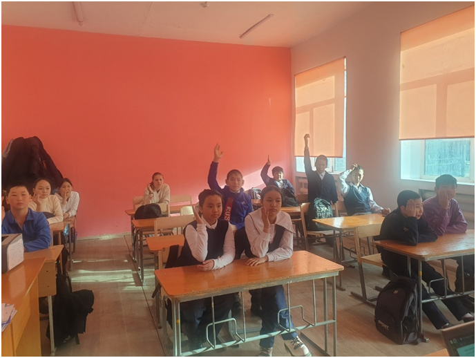 Учебный день новой недели начался с контроля по соблюдению мер безопасности по профилактике ОРВИ, гриппа и других инфекционных заболеваний. В 8.00 часов была организована церемония поднятия государственных флагов Российской Федерации и Республики Тыва. Право поднять государственные флаги предоставлено учащимся 7 и 6 классов Уула Опану и Монгуш Аюржане.
