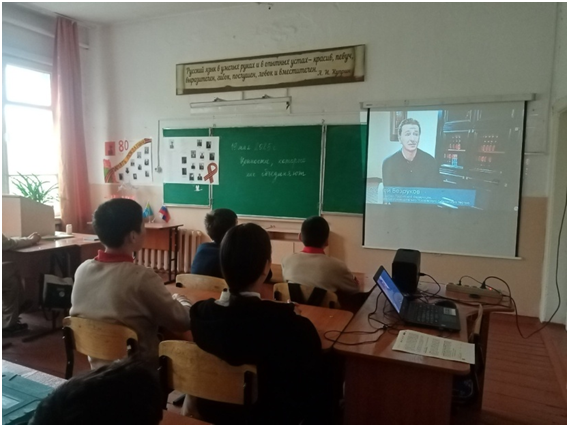 Сегодня в школе организована видеозапись фестиваля «Салют Победы» для участия в муниципальном этапе. В фестивале приняли участие учащиеся 1-8 классов. Данный фестиваль посвящен 80-летию Победы в Великой Отечественной войне и Году защитника Отечества.