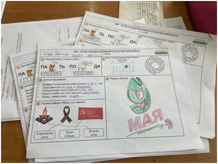 Сегодня также в школе прошел конкурс патриотических уголков, посвященных Дню Победы и Году защитника Отечества. Классы представили свои уголки в различных форматах. Жюри конкурса просмотрели и оценили все представленные варианты.