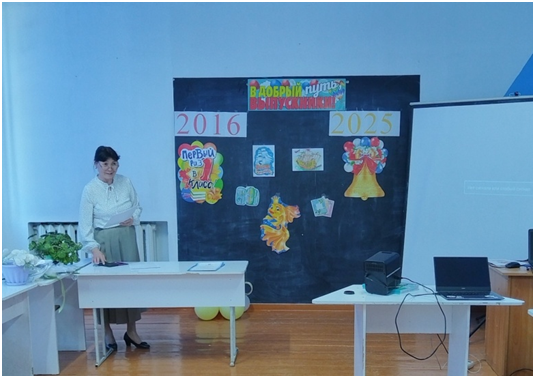 Далее выпускников поздравили со знаменательным днем в их жизни и пожелали успешной сдачи экзаменов педагоги, родители, гости мероприятия. С добрыми напутствиями к ним обратилась директор школы Доржу М.А, она пожелала ребятам успеха в достижении своих целей в жизни, пожелала быть честными, добрыми людьми, любить свою малую Родину и трудиться во благо нашей республики.