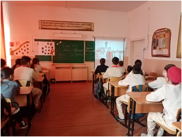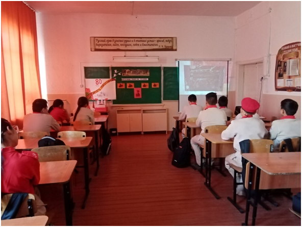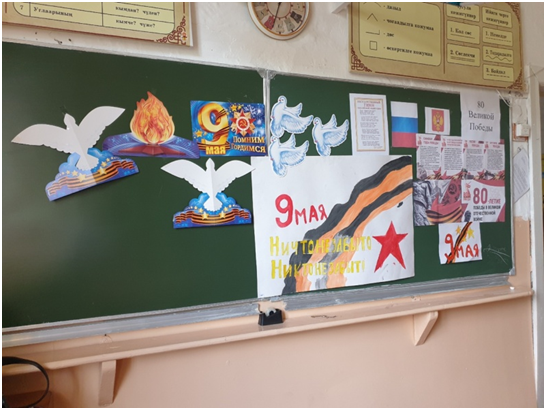 Затем классными руководителями во всех классах проведены внеурочные занятия из цикла «Разговоры о важном» на тему «80-летие Победы в Великой Отечественной войне» в целях развития интереса обучающихся к историческому наследию России и событиям Великой Отечественной войны, формирования осознания всемирно-исторического значения Победы над нацизмом, решающей роли СССР в разгроме агрессоров в 1945 году, понимания значимости сохранения исторической памяти, героических подвигов и самопожертвовании многонационального российского народ, чувства гордости за свою Родину, сопричастности к великой истории России и уважения к предкам.