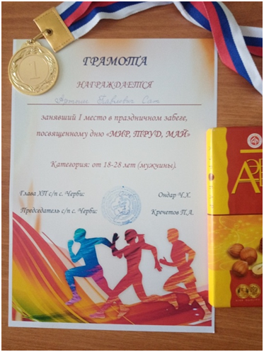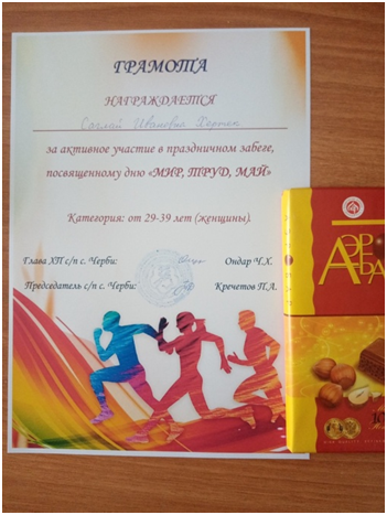 Сегодня педагоги нашей школы Хертек С.И., Сат А.П., Донгак О.Х., Кандан Ч.Ч. приняли участие в массовом праздничном забеге «Мир! Труд! Май!» среди жителей сумона. Они награждены грамотами и медалями за призовые места и активное участие. Поздравляем учителей!