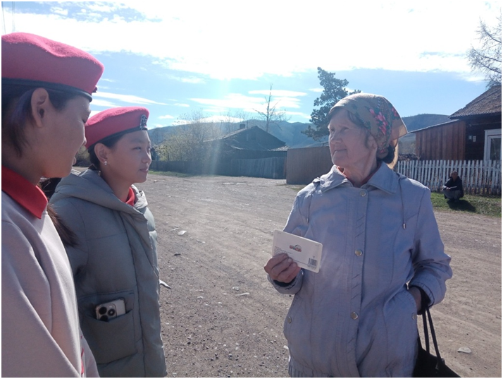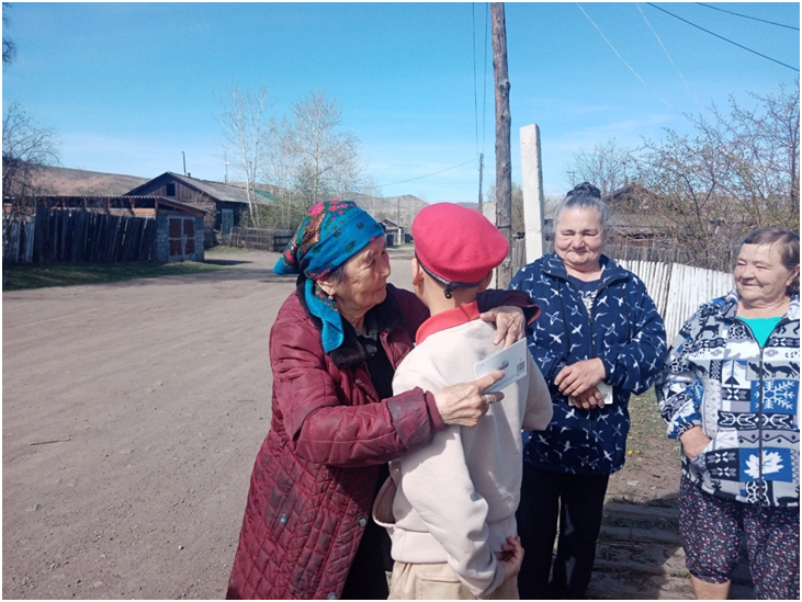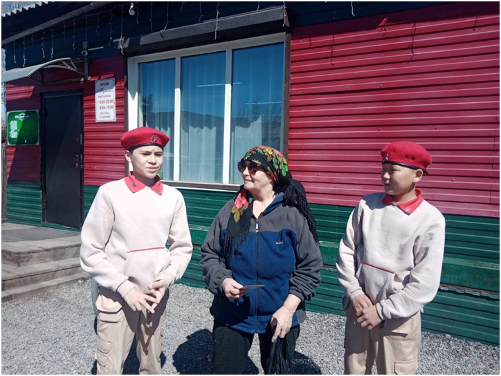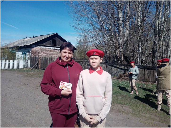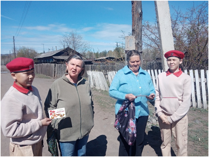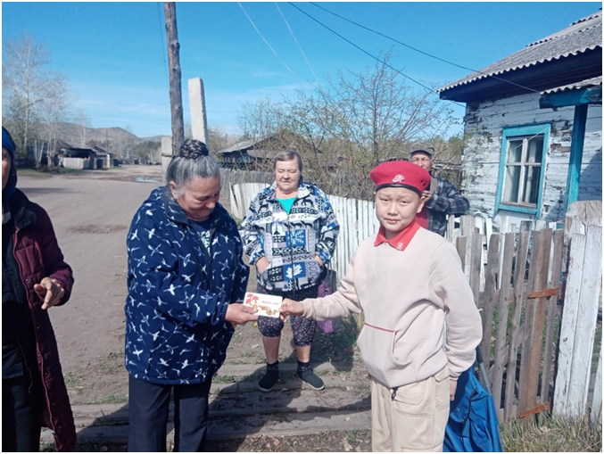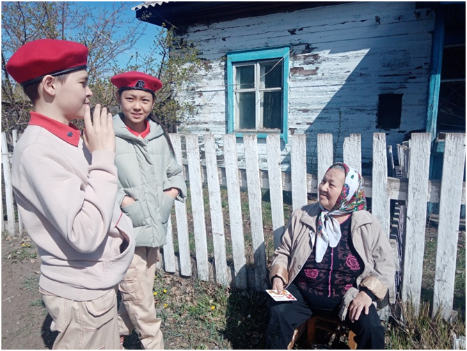 В преддверии Дня Победы в рамках Всероссийской акции «80 лет Великой Победе» юнармейцы 7 класса под руководством классного руководителя Сандый Ш.В. поздравили с праздником родственников Тружеников тыла и ветеранов Великой Отечественной войны. Юнармейцы вручили им открытки с пожеланиями здоровья, счастья, благополучия и мира. Данная акция является проявлением уважения и благодарности молодого поколения к подвигу всех, кто приближал Победу. Помнить об этом важно всегда. Передавая эту память из поколения в поколение, мы сохраняем связь времен и обеспечиваем преемственность духовных ценностей.